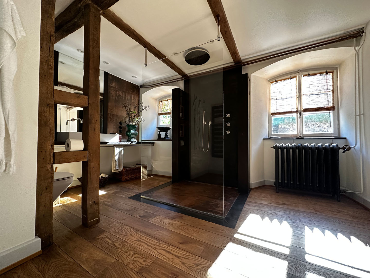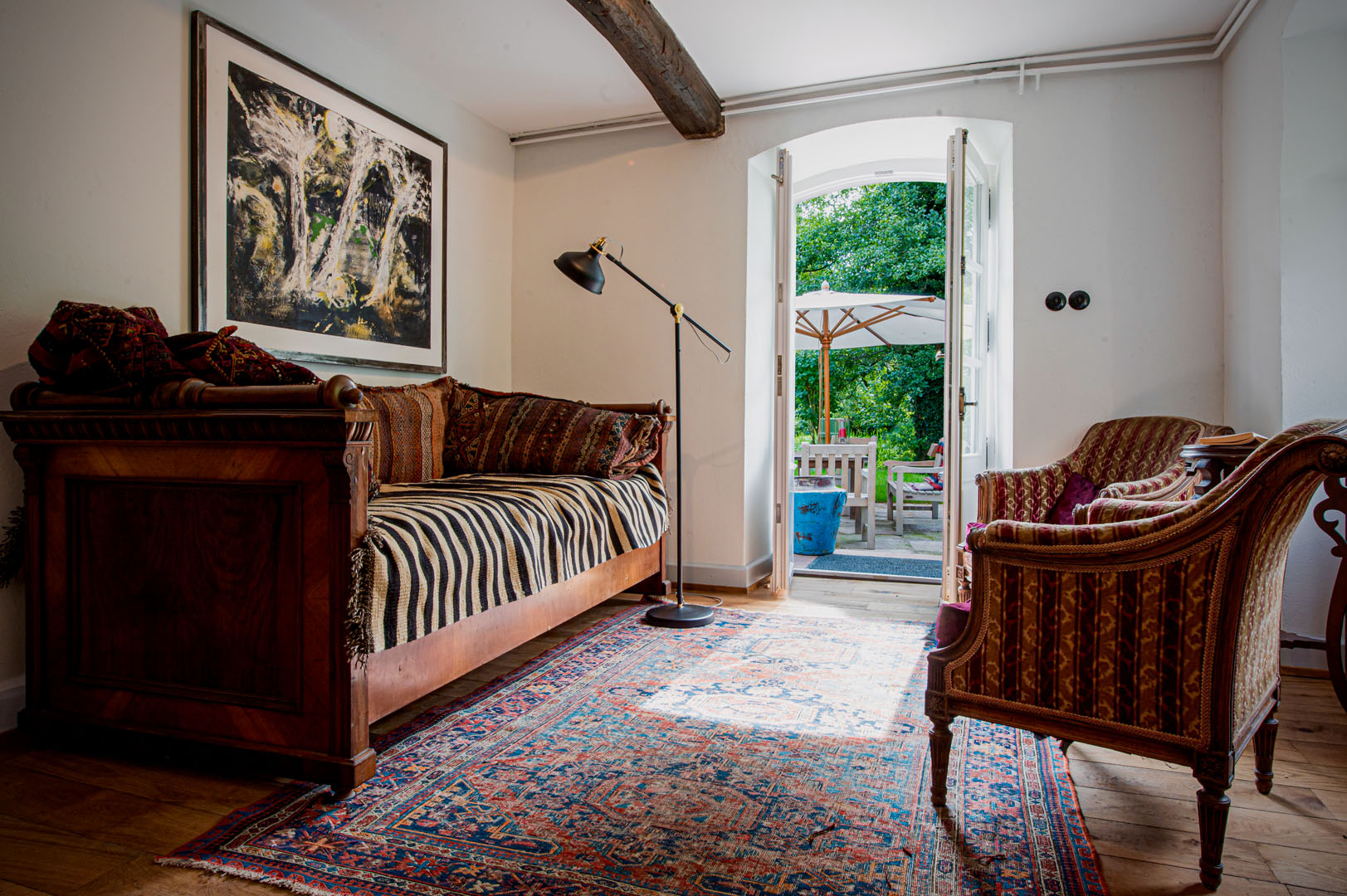 Note: Please note that the garden with direct access to the canal, the Schwarzbach, and the weirs is not suitable for children under 14 years of age. For guests with children under 14, we recommend the Maison Forestière – Fischeracker.